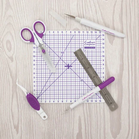 Im Crafter's Companion Essentials Werkzeugset finden Sie alles, was Sie für Ihre ersten Bastelprojekte benötigen! Jedes Werkzeug in diesem Set ist unverzichtbar und perfekt für unzählige kreative Papierbastelarbeiten. Egal, ob Sie gerade erst anfangen oder Ihre bewährten Werkzeuge ergänzen möchten – mit diesem Set gelingen Ihnen perfekte Papierbastelarbeiten. Unverzichtbare Werkzeuge für Papierbastelarbeiten: Das Crafter's Companion Essentials Werkzeugset enthält ein Bastelmesser, einen Ausstecher, eine Pinzette, eine Präzisionsschere, ein Metalllineal und eine selbstheilende Schneidematte. Das perfekte Set für Papierbastel-Anfänger – Sie werden diese Werkzeuge immer wieder verwenden! Präzise Messungen: Das Set enthält ein 15 cm langes Metallschneidelineal und eine 15 cm lange selbstheilende Schneidematte. Beide verfügen über metrische und imperiale Maßeinheiten. Die robuste, selbstheilende Schneidematte schützt Ihre Arbeitsfläche beim Schneiden mit dem Bastelmesser. Detaillierte Designs: Sie erhalten außerdem einen Ausstecher, mit dem Sie selbst die filigransten Stanzformen schnell und einfach ausstechen können. Plus Pinzette zum einfachen Anordnen kleinerer und filigranerer Dekorationen. Ein echter Profi: Das Set enthält ein hochwertiges Bastelmesser und eine 11,4 cm lange Präzisionsschere – perfekt zum Ausschneiden und präzisen Zuschneiden von Papierbastel-Mittelstücken, Bordüren, Sprüchen und Dekorationen für handgemachte Karten und Projekte. Basteln für unterwegs: Die 15 x 15 cm große Schneidematte und das 15 cm lange Lineal eignen sich ideal für Papierbastelprojekte in verschiedenen Formen und Größen. Sie sind außerdem die perfekte, kompakte und tragbare Option, um sie in einer Tasche zu einem Bastelworkshop oder einer Veranstaltung mitzunehmen! Lieferumfang: Bastelmesser; Stechwerkzeug; Pinzette; 11,4 cm Präzisionsschere; 15 cm Metall-Schneidelineal; 15 cm selbstheilende Schneidematte.